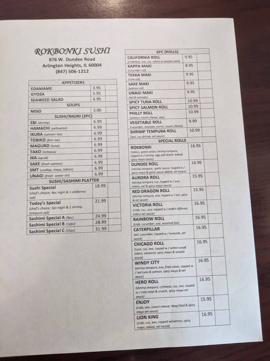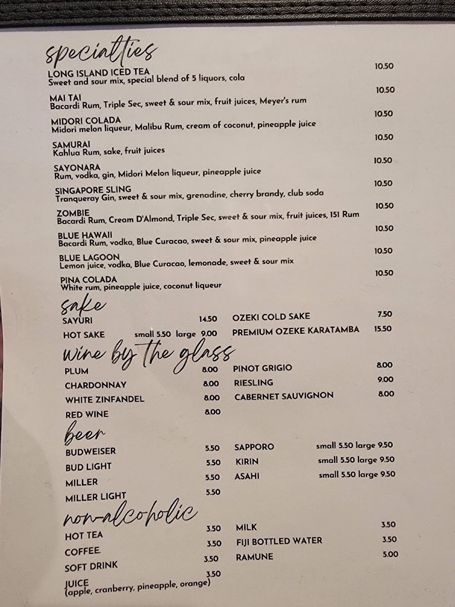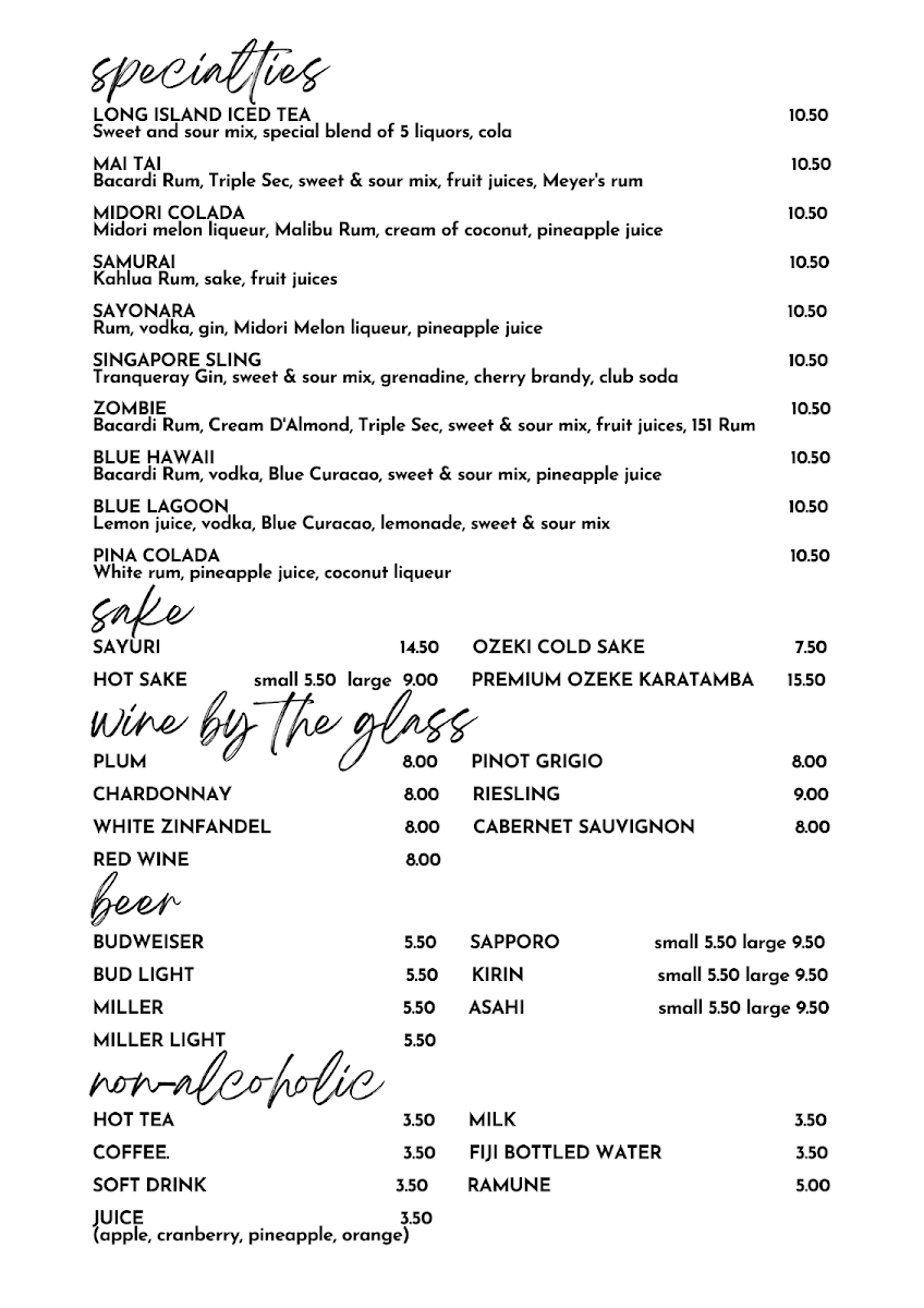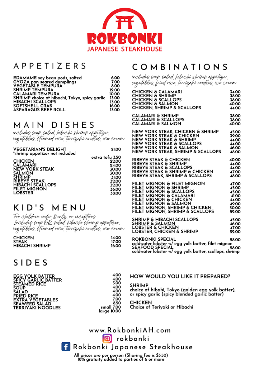 Choice of hibachi, Tokyo and spicy garlic.